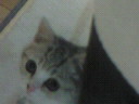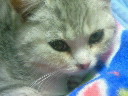 今日病院にいってきました。診断はウィルス性鼻気管炎でした。液体の飲み薬、点目薬を処方してもらいました。食欲も落ちていて、やせすぎぐらいだといわれました(;^_^A うちでドライフードは全然たべなかったから、缶詰め中心であげてたんですが、それもあまりたべなかったのですが、病院でだされた栄養食はがつがつ食べたから、先生に餌がリリィの好みじゃないか合ってないといわれ、試供品渡されちゃいました(>_<)
